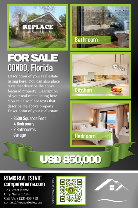 Real estate exposures offers overnight delivery, full bleed, uv coated cardstock custom flyer printing for real estate agents. Real estate flyers can generate a huge amount of leads and sales for real estate listings. When it comes to real estate, this might not be so true. Real estate flyers make it easy to announce your open house, advertise your property listings, and attract new buyers. Real estate flyers from realty studio design are the best dollar value for quality advertising for realtors, agents and offices. Customize this design with your video, photos and text. For realtors that need a professional designed feature sheet template in less than 10 minutes.